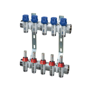 - Collettore di mandata completo di flussimetri con regolatori di portata per il corretto bilanciamento dei circuiti
