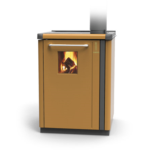 COMPONENTI: Termoprodotto ecologico a legna costruita in acciaio di grosso spessore. Il corpo caldaia  può avere lo speciale trattamento di vetrificazione con garanzia 8 anni (optional). Rivestimento smaltato di vari colori con porta focolare in ghisa in ceramica con finiture in rilievo a fiori, potenza al focolare 30.5 kW, potenza nominale massima kW 21.4, di cui 19.1 kW resi all'acqua e 2.3 kW all'ambiente; dimensione max. focolare 540x300x442 (HxLxP), aria primaria, aria secondaria regolata con termostato automatico. Questo sistema ottimizza il consumo di legna, offre maggiore autonomia e mantiene elevati rendimenti. Dimensione bocca fuoco mm 235x210 (HxL). Cornice superiore in ghisa con stendini a scomparsa integrati, attizzatoio, raschietto e guanti. Maniglie in acciaio satinato, comodo scuotimento griglia, levaper il sollevamento della griglia focolare su 3 altezze, cassettocenere estraibile, starter uscita fumi, termometro caldaia, termostato anticondensa, attacchi idraulici posteriori e laterali sx. da 1" 1/4 femmina, scarico fumi superiore D.150 mm, alzatina posteriore, piano cottura in acciaio satinato, piano vetrificato (optional). Progetto costruttivo innovatico perchè consente di semplifcare le operazioni di manutenzione straordinaria. Peso 224,7 kg.