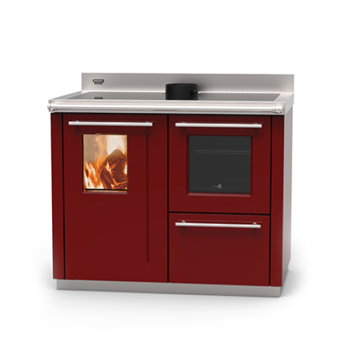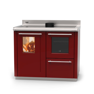Bosky si rinnova e diventa ancora più bella e funzionale grazie alla configurazione READY TO START: pronta da installare perchè equipaggiata di serie con circolatore, valvola di sicurezza, valvola di sicurezza termica, valvola di sfiato, scambiatore di sicurezza e vaso d'espansione per l'istallazione a vaso chiuso. Sostituzione semplificata grazie alle medesime quote di attacchi idraulici e uscita fumi delle versioni precedenti. COMPONENTI: corpo caldaia in acciaio di grosso spessore può avere lo speciale trattamento di vetrificazione con garanzia 8 anni (optional). Rivestimento smaltato di vari colori con porta focolare in ghisa e maniglia anti-scottatura, vetro ceramico per la visione della fiamma, potenza al foclare massima 21.4 kW, di cui max. 19.1 kW resi all'acqua e 2.3 kW all'ambiente; dimensione max. focolare 540x290x442 (HxLxP), aria primaria, aria secondaria regolata con termostato automatico. Questo dispositivo ottimizza il consumo di legna, offre maggiore autonomia e mantiene elevati i rendimenti. Dimensioni bocca fuoco mm282x224 (HxL). Porta forno a doppio vetro con termometro, forno in acciaio smaltato completo di griglia e leccarda regolabile su 3 livelli HxLxP 320x360x550, dispositivo per regolare la temperatura del forno su 5 livelli. Cassetto scorrevole porta attrezzi, completo di maniglia in acciaio, attizzatoio, raschietto e guanto. Maniglie in acciaio, comodo scuotimento griglia, leva per il sollevamento della griglia focolare su 3 altezze, cassetto cenere estraibile, starter uscita fumi, termometro e manometro caldaia, termostato anticondensa, attacchi idraulici posteriori e laterali sx. da 1" 1/4 femmina, scarico fumi superiore o posteriore D.150 mm, alzatina posteriore in acciaio inox, piano cottura in acciaio satinato o in vetro ceramico CERAN (optional). Progetto costruttivo innovativo perchè consente di semplificare le operazioni di manutenzione straordinaria. Peso 310 kg.